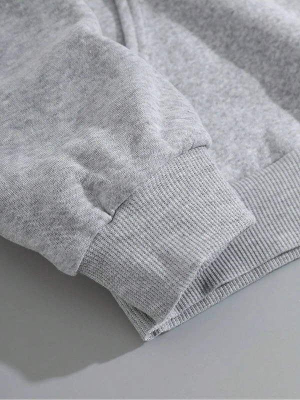 Unisex Baskılı Oversize Kapşonlu Sweatshirt Gri
