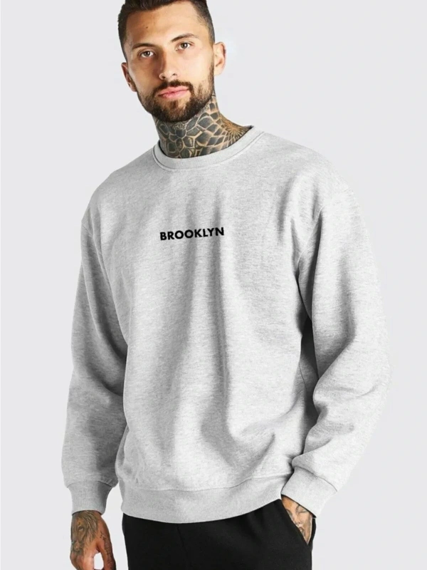 Siyah Oversize Brooklyn 1898 Baskılı Bisiklet Yaka Kapşonsuz Pamuklu Sweatshirt