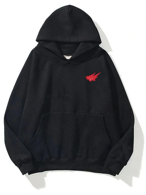 Siyah Oversize Trust Yourself Baskılı Kapşonlu Kanguru Cepli Pamuklu Sweatshirt