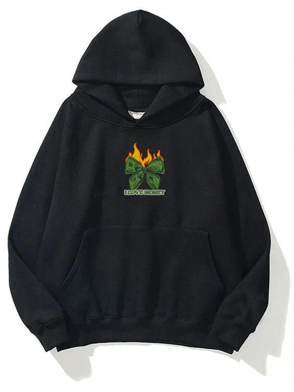 Unisex I Love Money Sweatshirt Hoodie Siyah