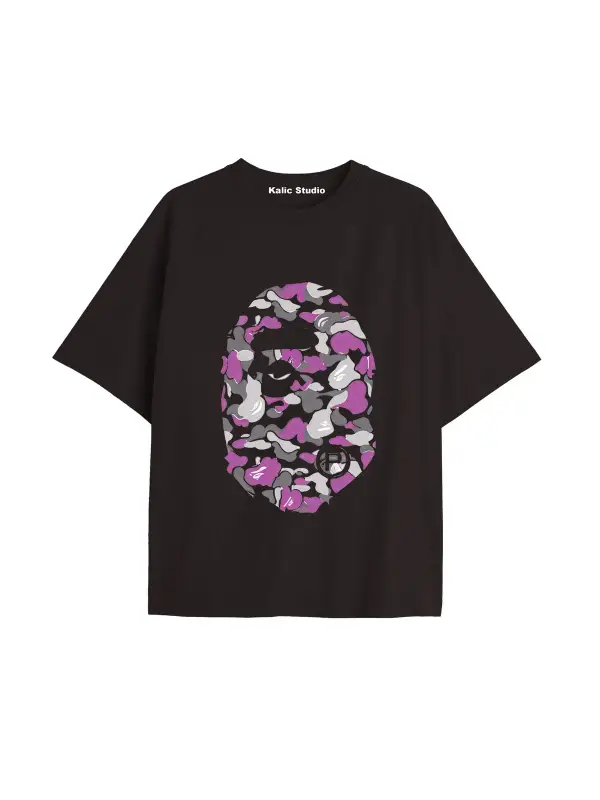 UNİSEX Bay Bape Desenli Siyah Yazlık T-shirt