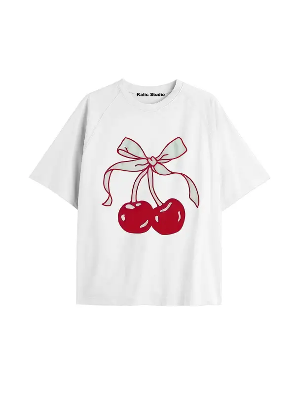 Y2k vintage Cherry Baskılı Sİyah T-shirt KOD 62