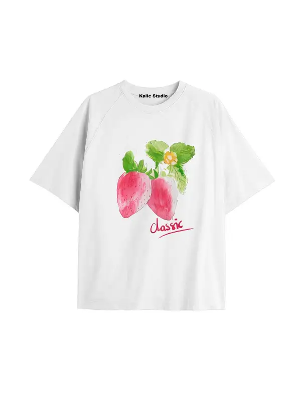 Kadın Çiçek Özel Baskılı Renkli Oversize Penye Pamuklu Bisiklet Yaka T-Shirt