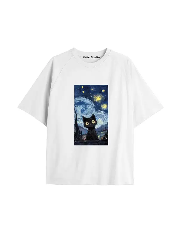 Unisex Van Gogh Baskılı Oversize Tshirt