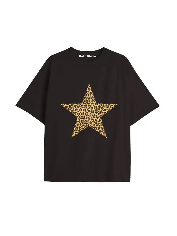 Y2k vintage Leopar Baskılı Sİyah T-shirt KOD 148