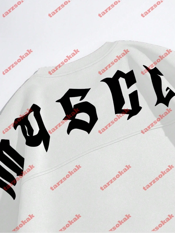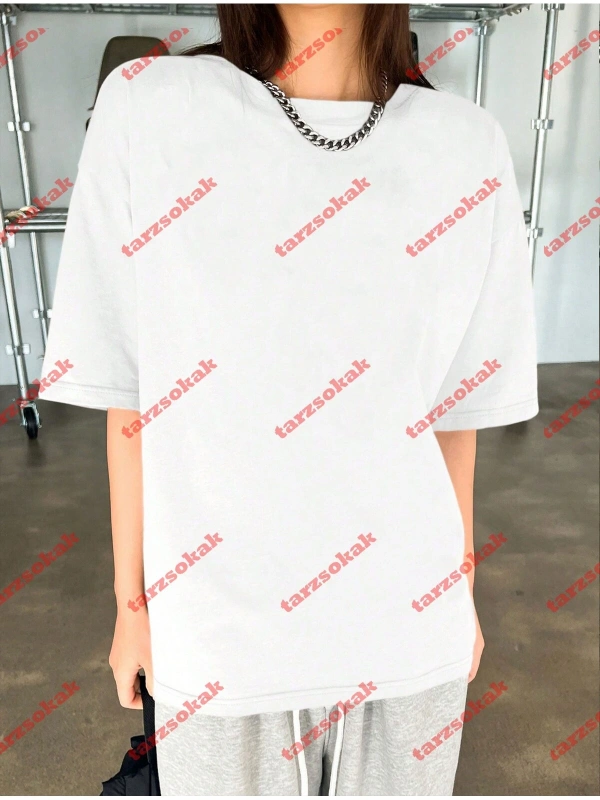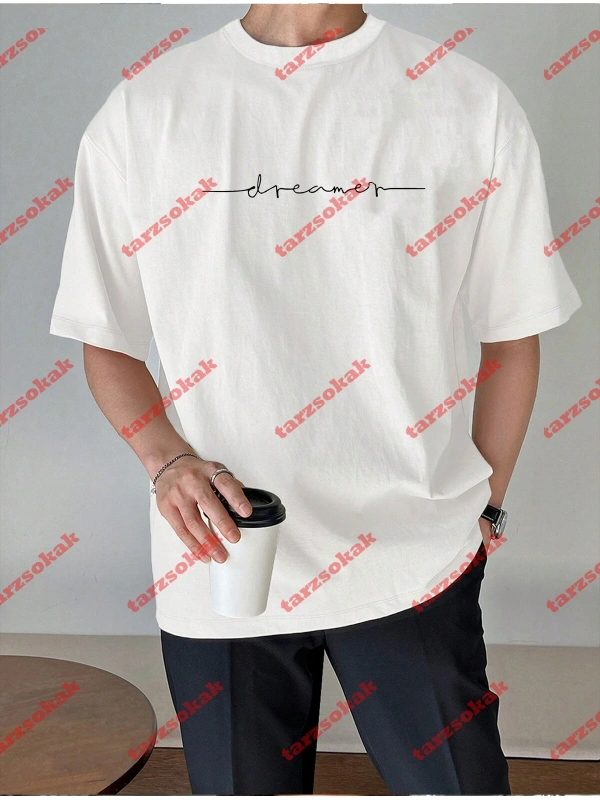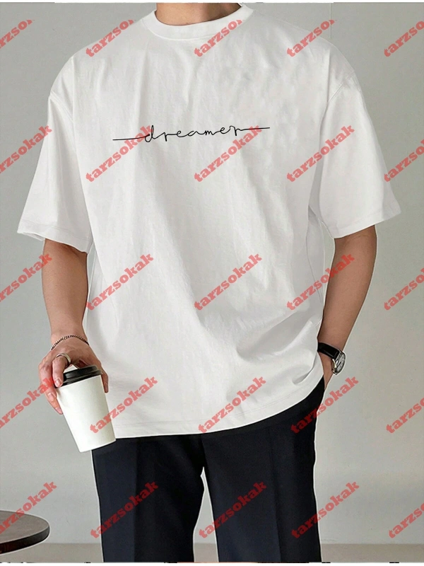Dreamer Baskılı Oversize Bisiklet Yaka Tshirt Beyaz
