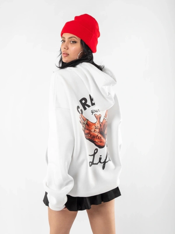 Free Gangster Baskılı Oversize Unisex Beyaz