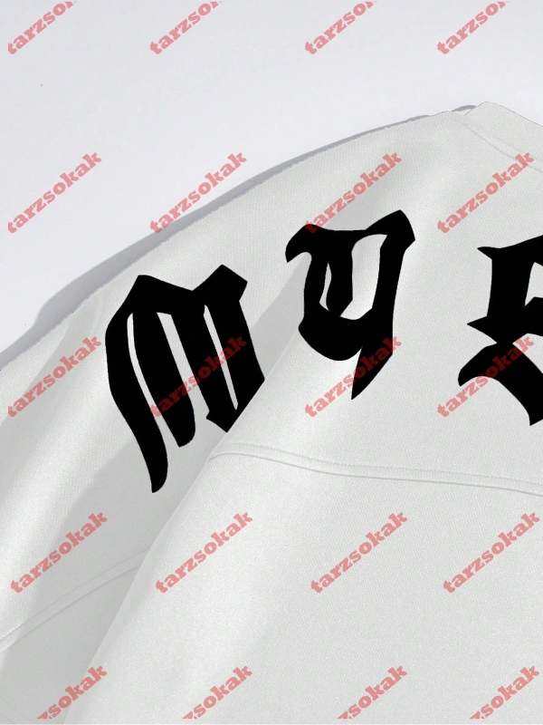 Biskilet Yaka Sweatshirt Beyaz V HARFİ İSME Özel Tasarım