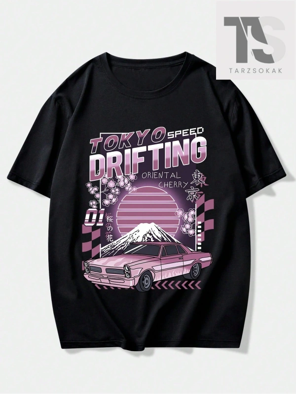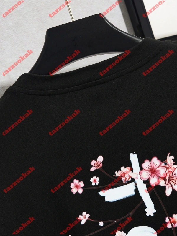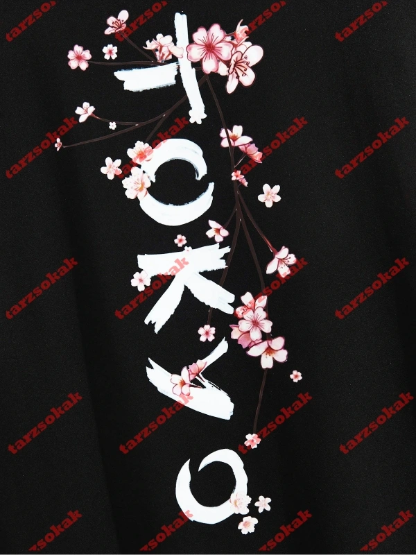 Erkek Çiçek Slogan Baskılı T-Shirt