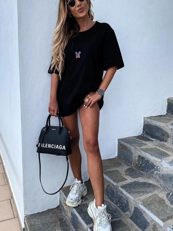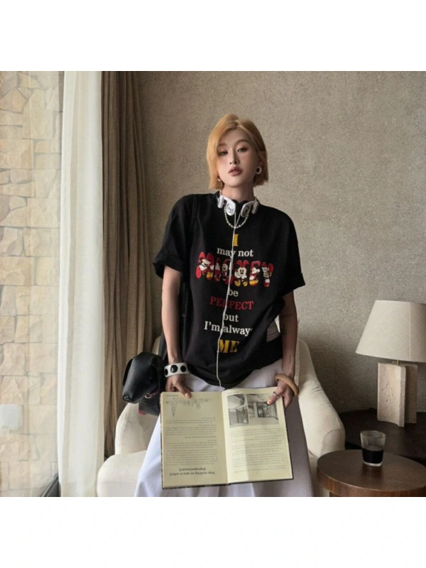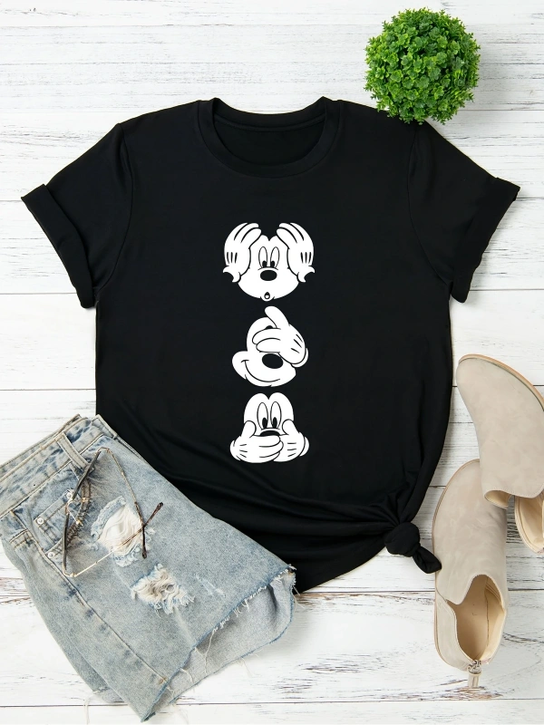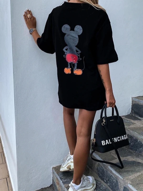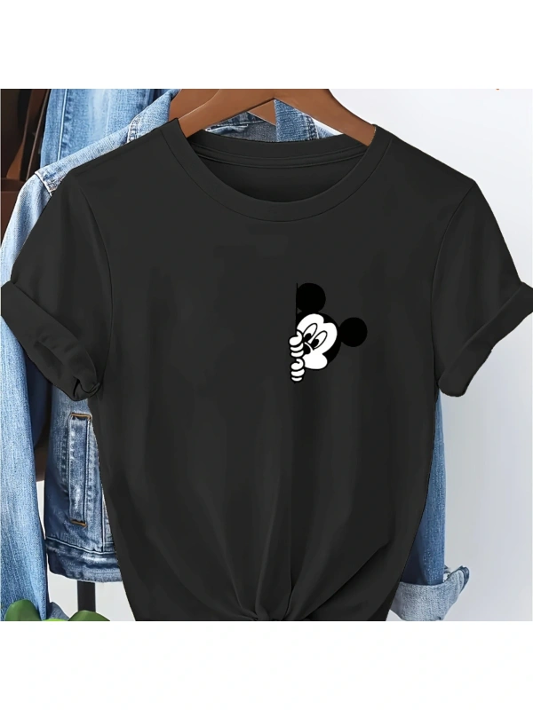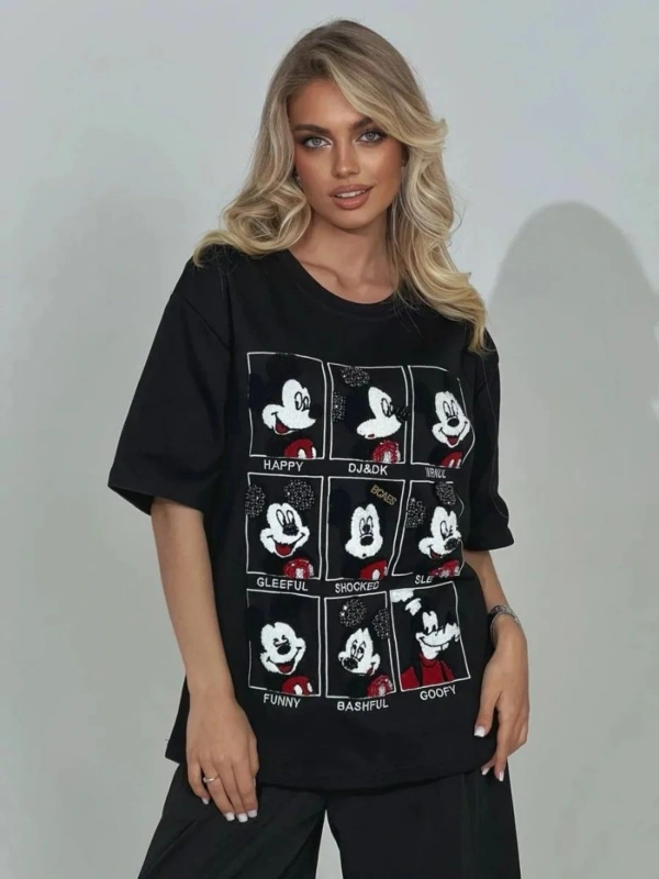 Unique----Kadın Siyah Mikey Mouse T-shirt