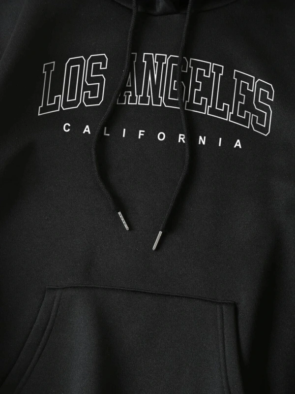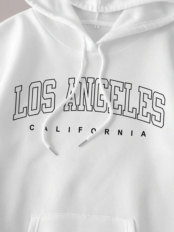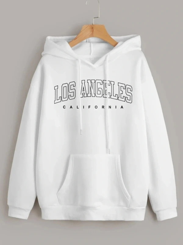 Unique----Unisex Beyaz Los Angeles Baskılı Kapüşonlu Oversize Sweatshirt