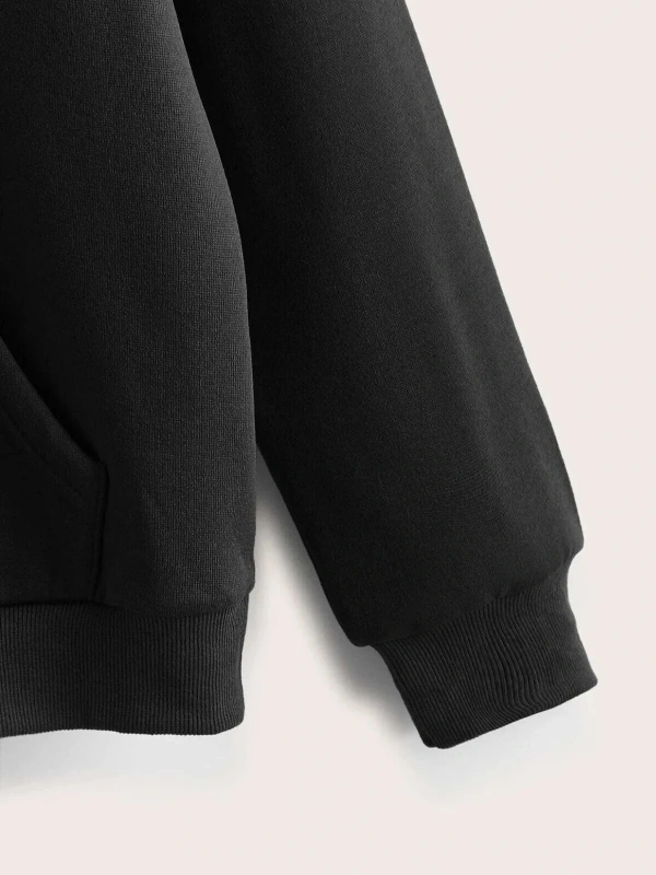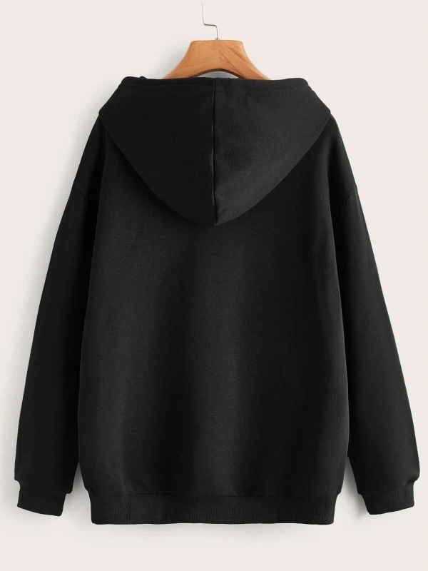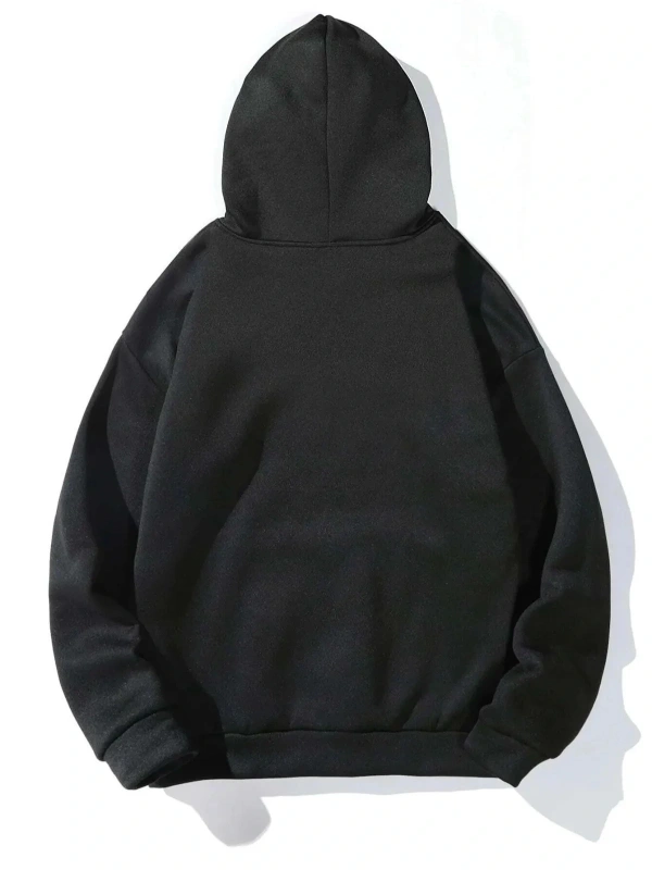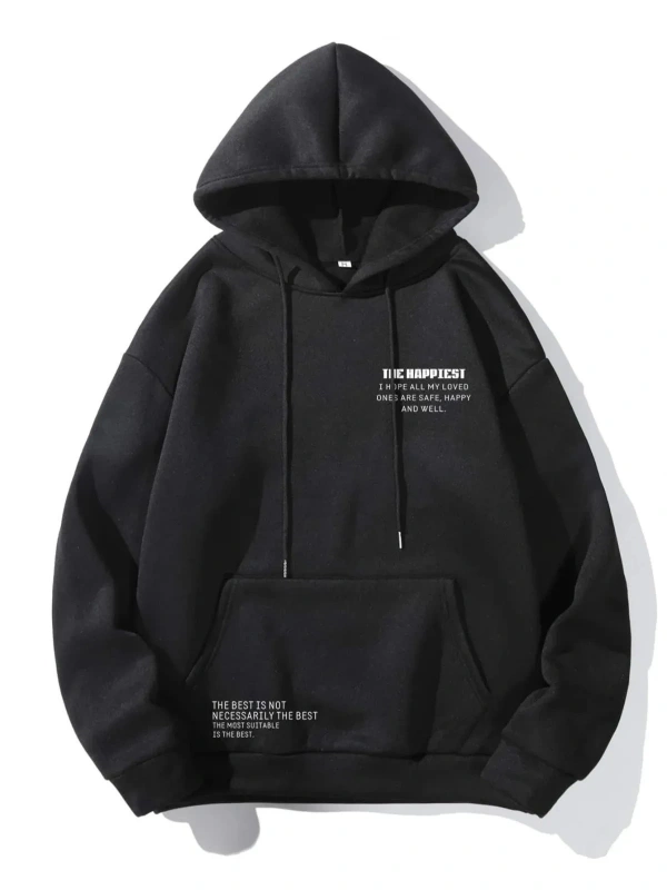 Unique----Unisex Siyah Happiest Baskılı Oversize Kapşonlu Sweatshirt