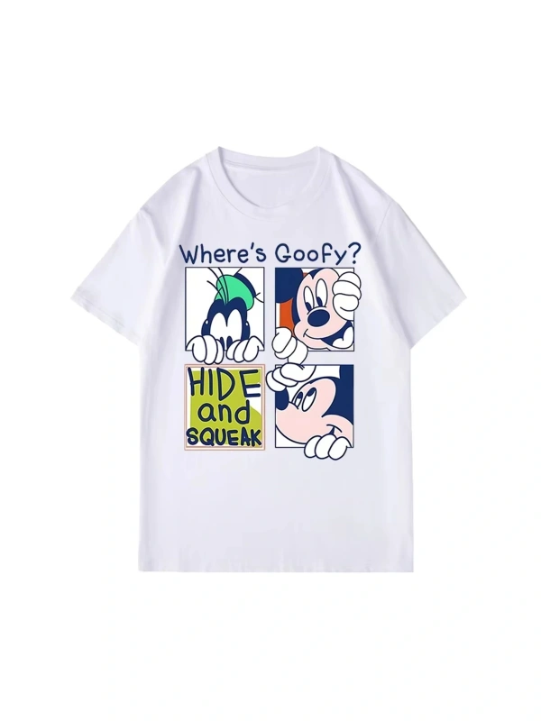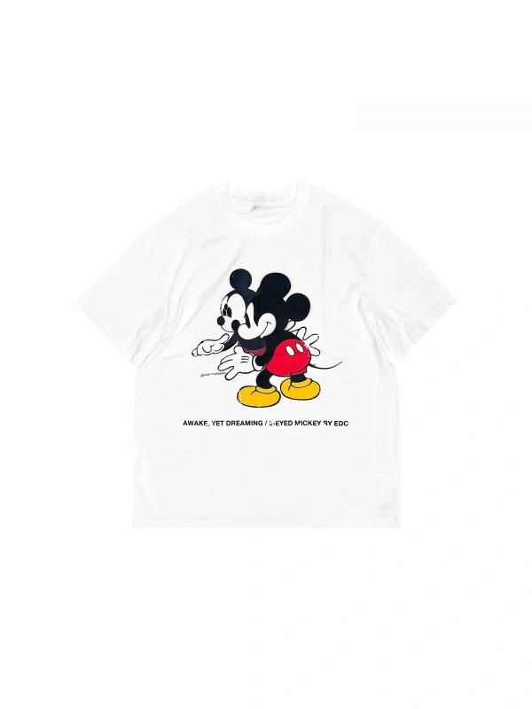 Unique----Unisex Kadın Erkek Mickey Mous Özel Baskılı Oversize Pamuk Penye T-shirt Beyaz