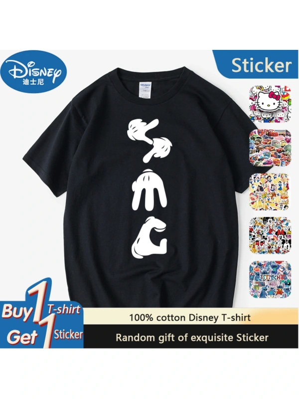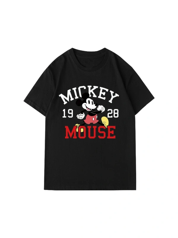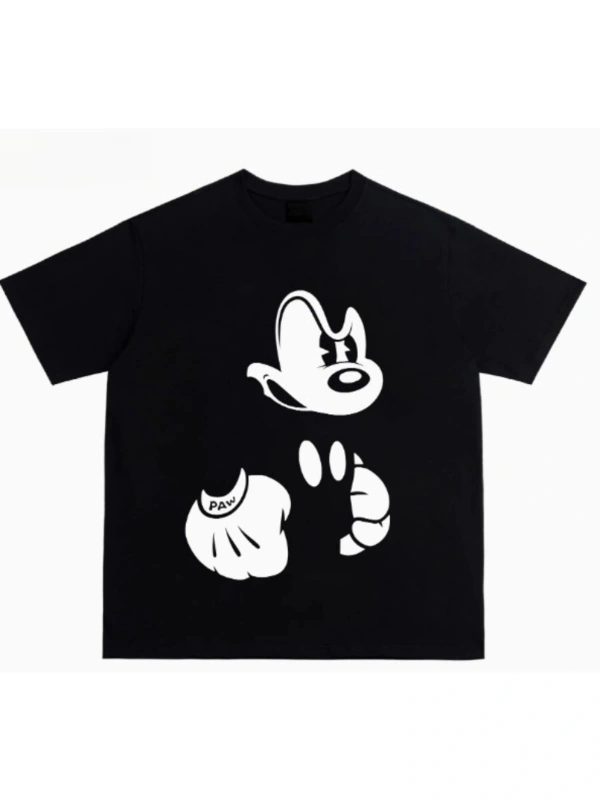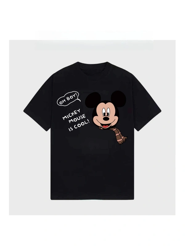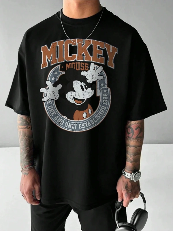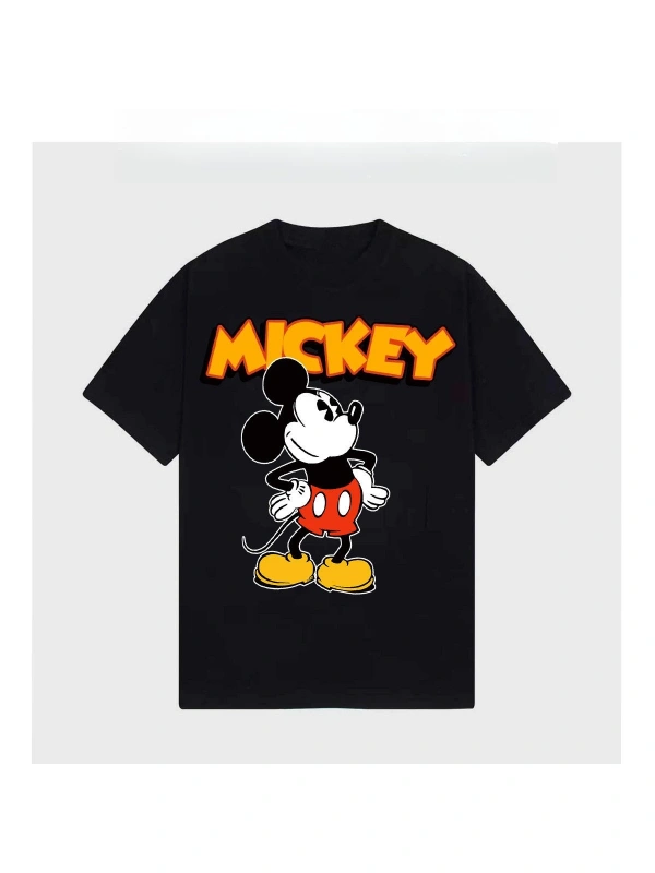 Unique----Unisex Kadın Erkek Mickey Mous Özel Baskılı Oversize Pamuk Penye T-shirt Siyah