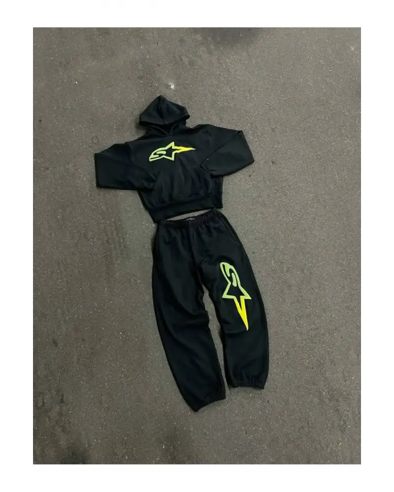 - Günlük kullanım için ideal, rahat ve şık bir görünüm sunan baskılı eşofman takımı.; - Uzun kollu tasarımı ile mevsim geçişlerinde ve serin havalarda konfor sağlar.; - Lastikli paça detayı sayesinde ayak bileklerine mükemmel uyum sağlar ve hareket özgürlüğü tanır.; - Kapüşonlu yaka tipi, baş ve boyun bölgesini soğuktan korurken sportif bir stil oluşturur.; - Standart boy kesimiyle her türlü vücut tipine uyum sağlayarak rahat bir kullanım sunar.; - Pamuk materyali cildin nefes almasına olanak tanırken yumuşak dokusuyla gün boyu konforlu bir deneyim yaşatır.; - Oversize kalıbı ile modern ve trend bir görünüm elde edilirken aynı zamanda rahat hareket etme imkanı da sunulur.; - Unisex tasarımıyla hem kadınlar hem de erkekler için uygun, geniş bir kullanıcı kitlesine hitap eder.; - TR menşei garantisiyle yerli üretim kalitesini evinizde hissedin; Türkiye'de üretilen bu eşofman takımıyla gururla giyin.; - Dokuma kumaş tipi dayanıklılığı arttırarak uzun süreli kullanım va