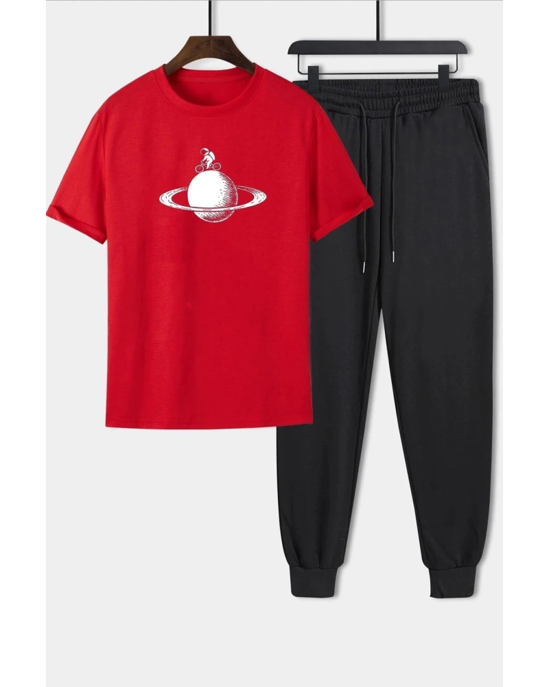 Unisex Astronaut Rides Baskılı 2'li Eşofman Takımı TSH-SIYAH-ASTBISIKLET-ESH-DÜZ