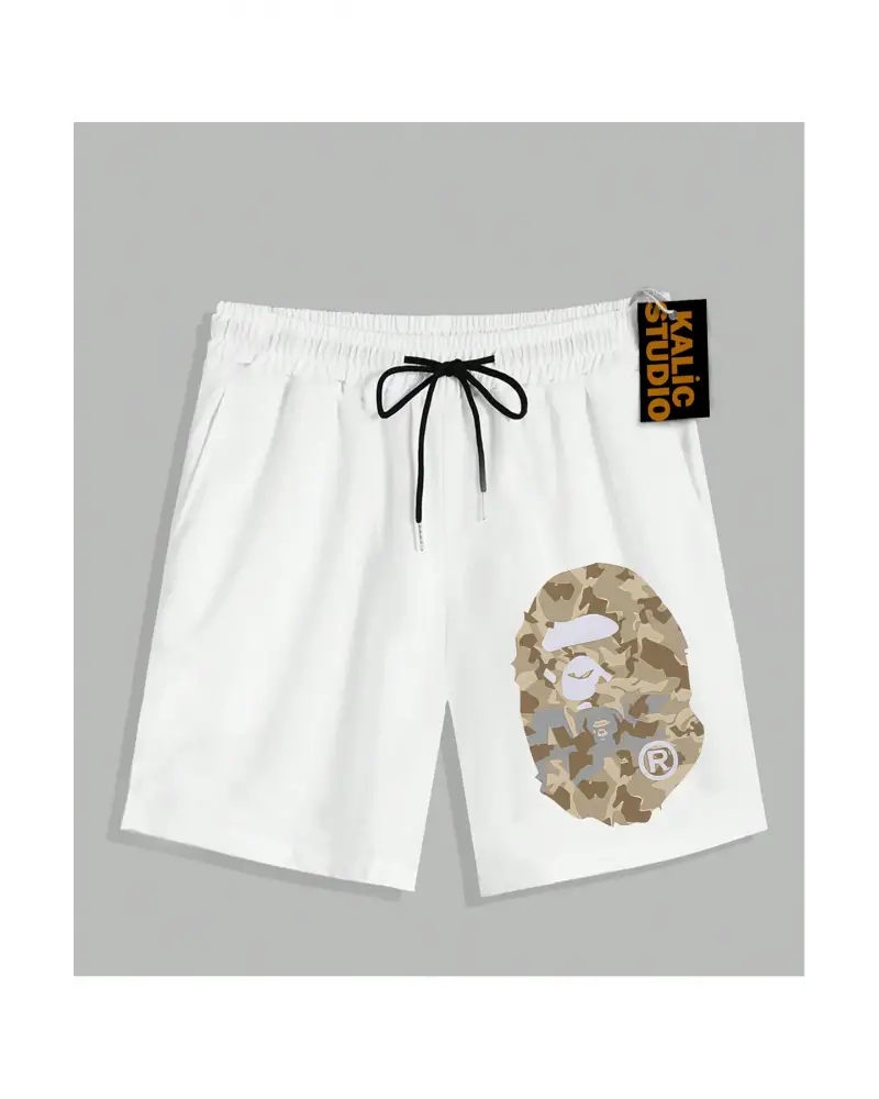 UNİSEX Bay Bape Desenli Beyaz Yazlık ŞORT