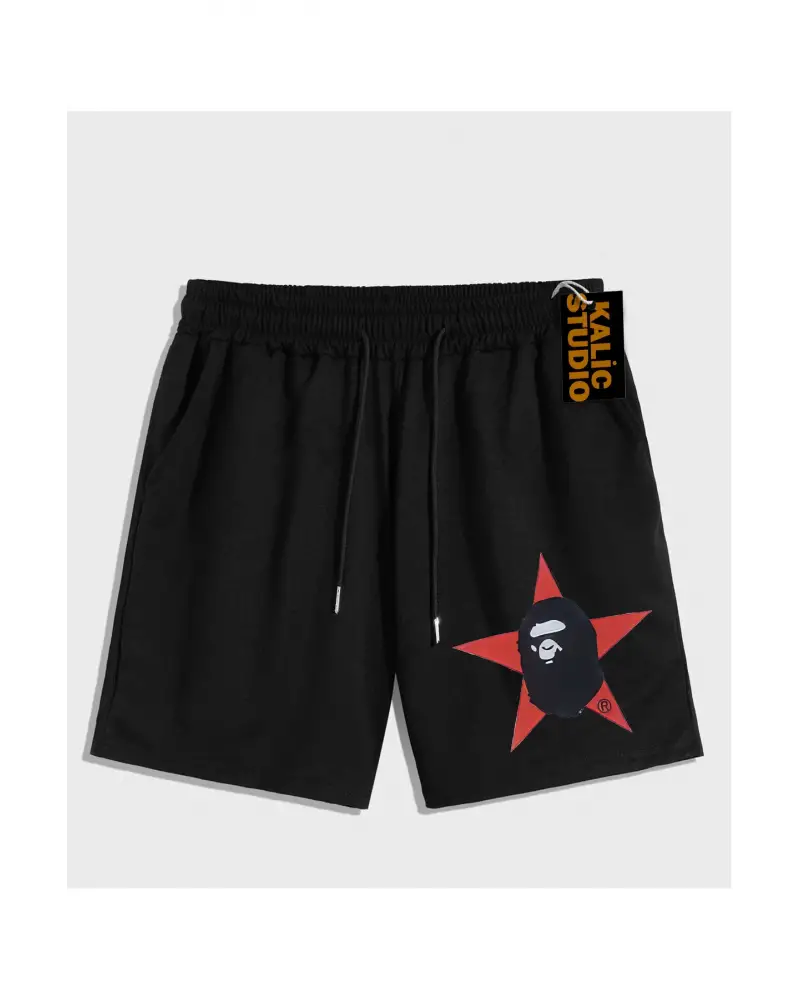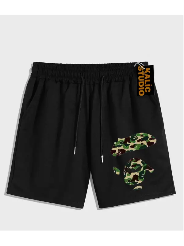 UNİSEX Bay Bape Desenli Siyah Yazlık ŞORT
