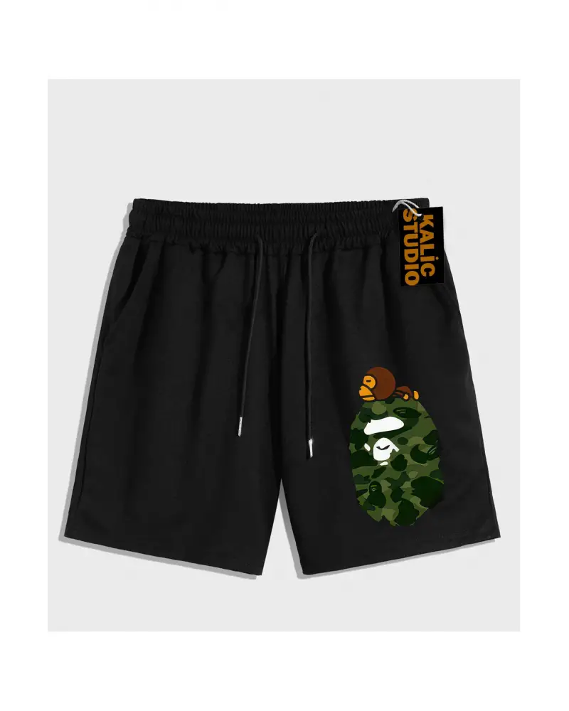 UNİSEX Bay Bape Desenli Siyah Yazlık ŞORT