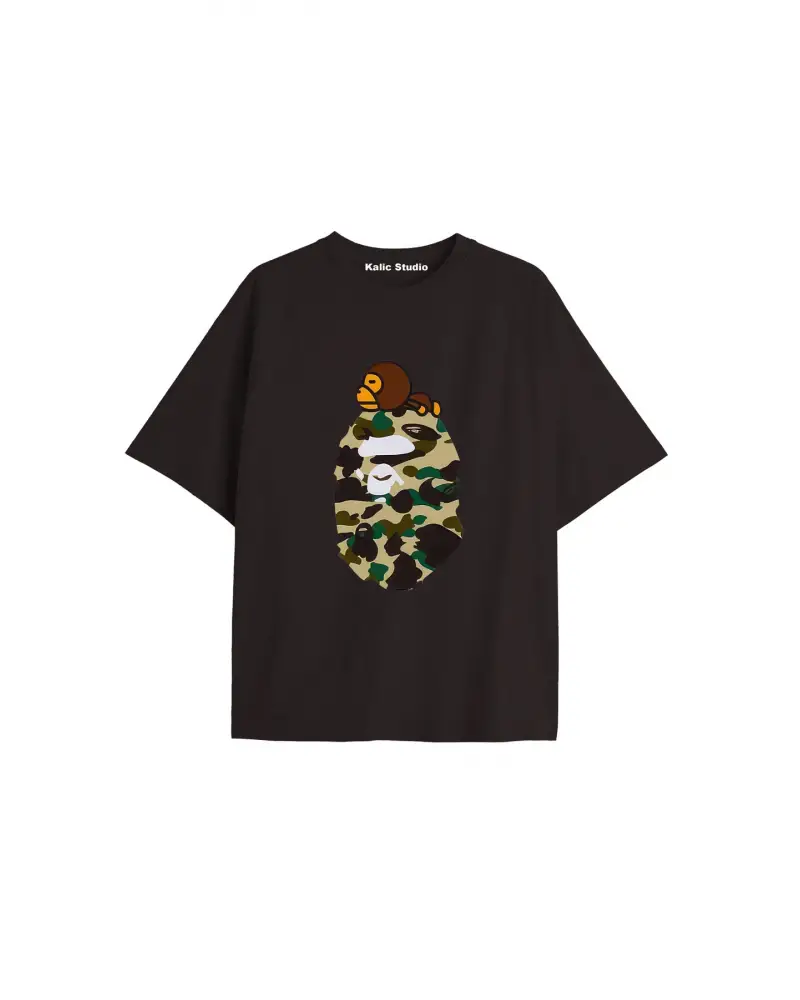 UNİSEX Bay Bape Desenli Siyah Yazlık T-shirt