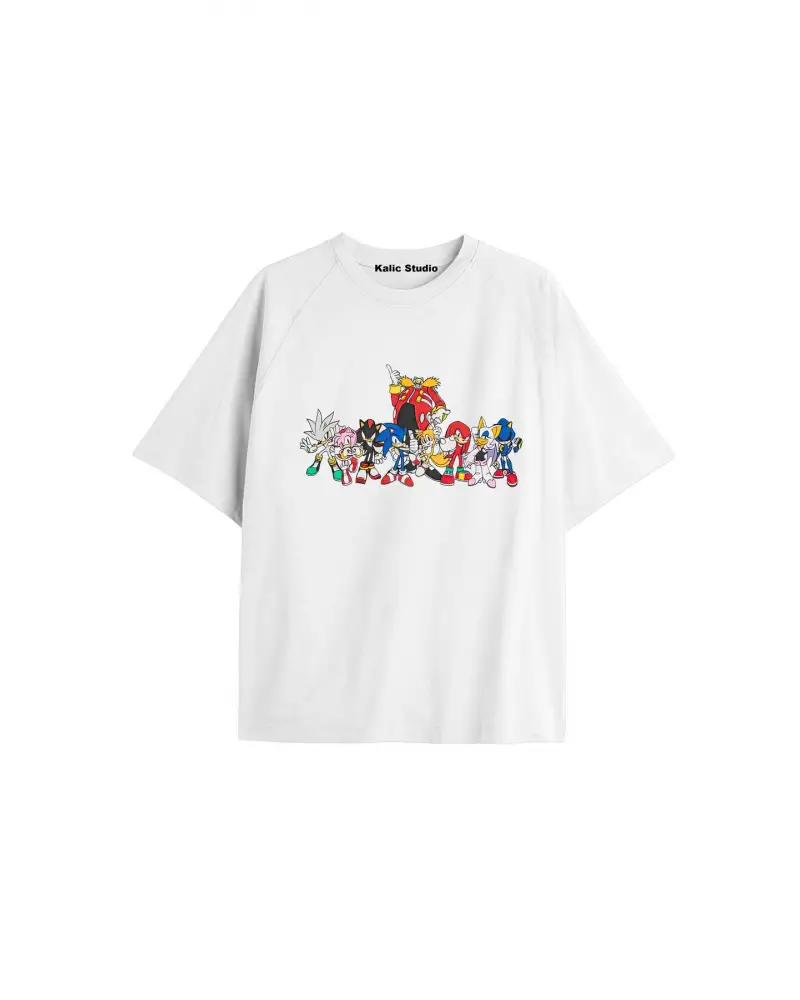 UNİSEX Bay Sonic Desenli Beyaz Yazlık T-shirt