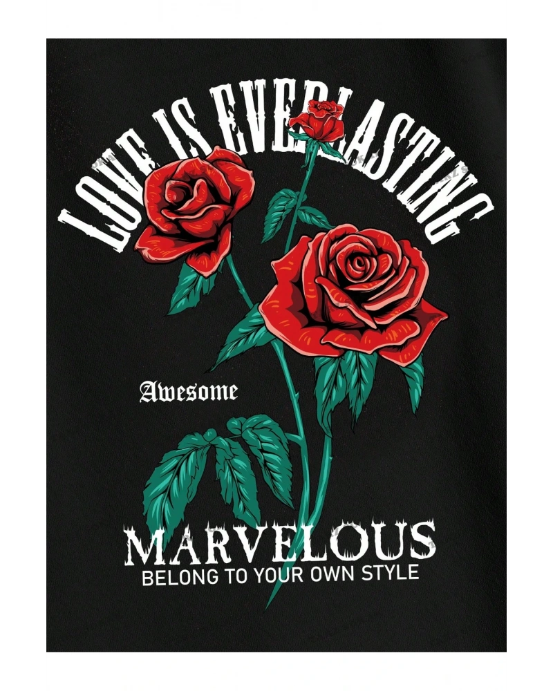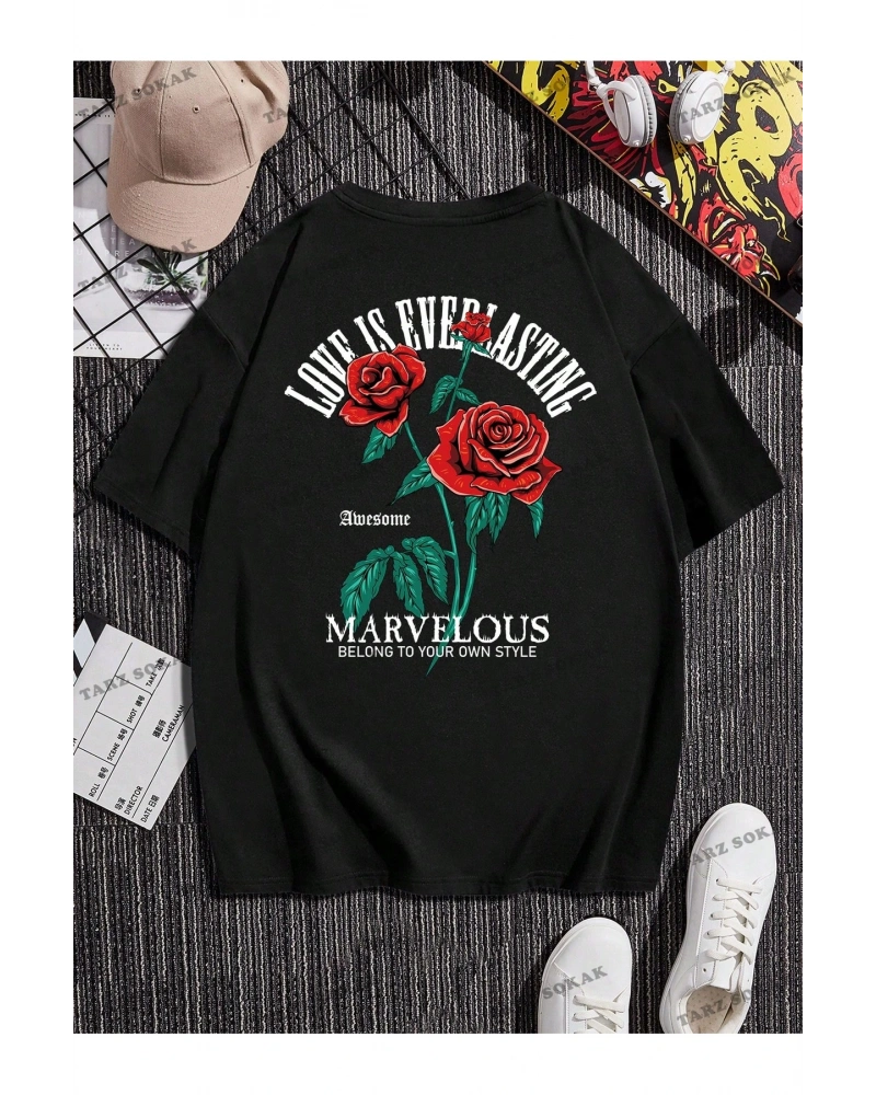 Uni?sex Bay/bayan Love Baskili Gül T-shirt