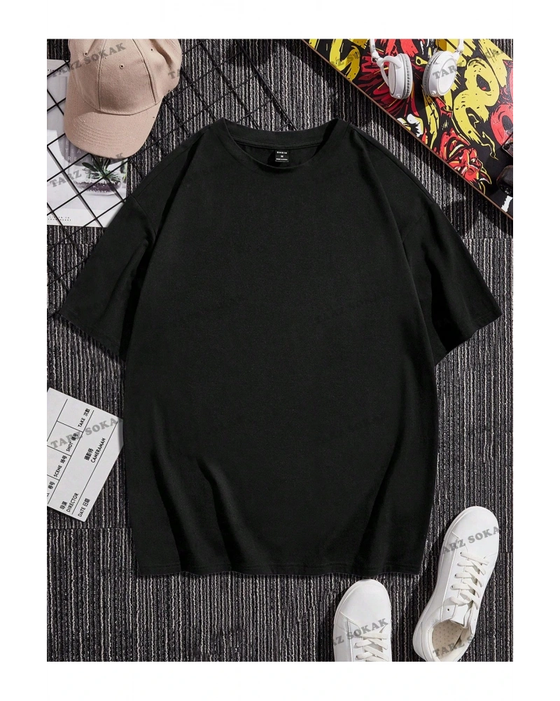 Siyah Oversize Çift Renk TÜY Baskılı Unisex Tshirt