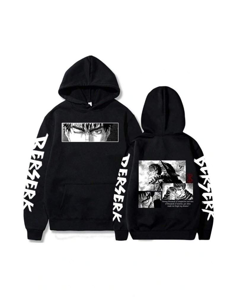 Unisex Berserk Guts Desen Erkek Hoodies 14715 Siyah