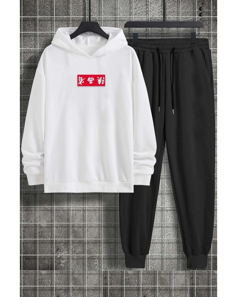 Beyaz Kapşonlu Handsome Detaylı ikili TAKIM