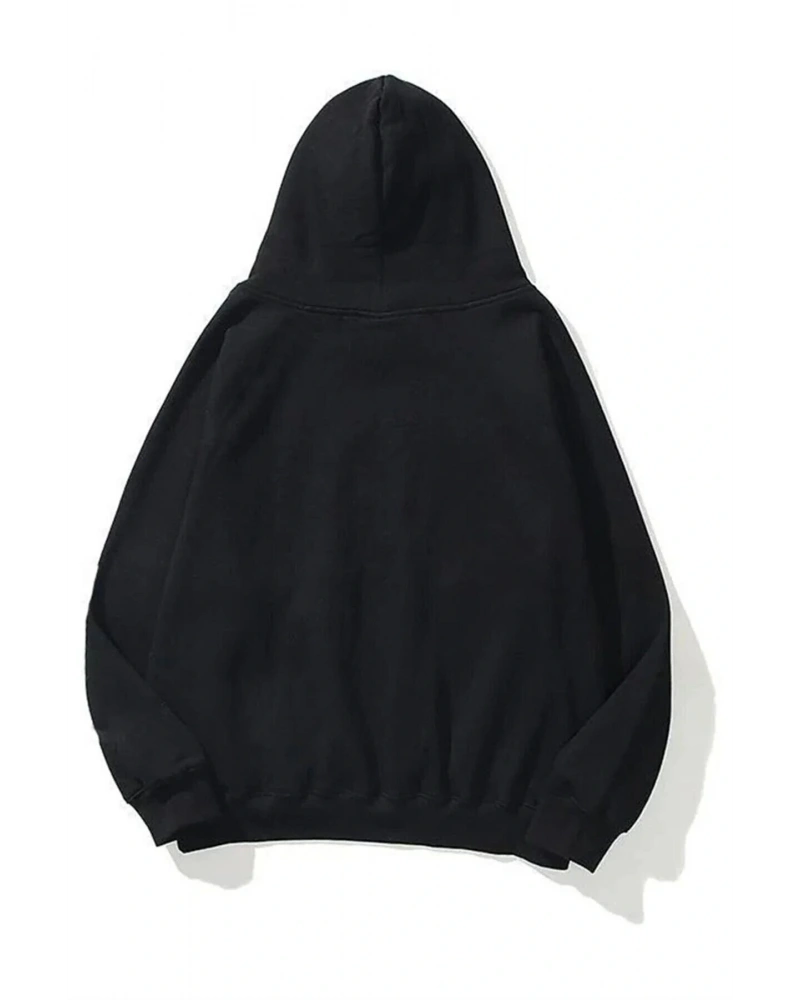 Siyah Yakasız Tüy Baskılı Unisex Sweatshirt