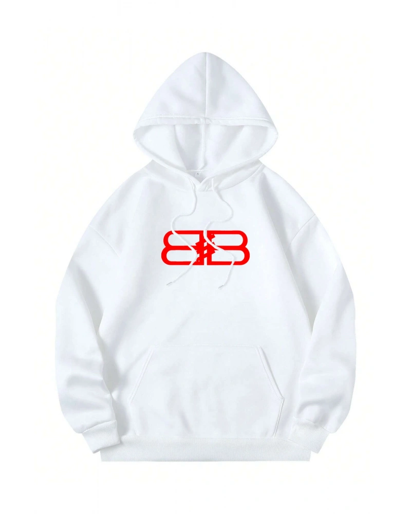 Unisex Erkek/Kadın BB Renkli Özel Baskılı Oversize Kapüşonlu Sweatshirt Beyaz