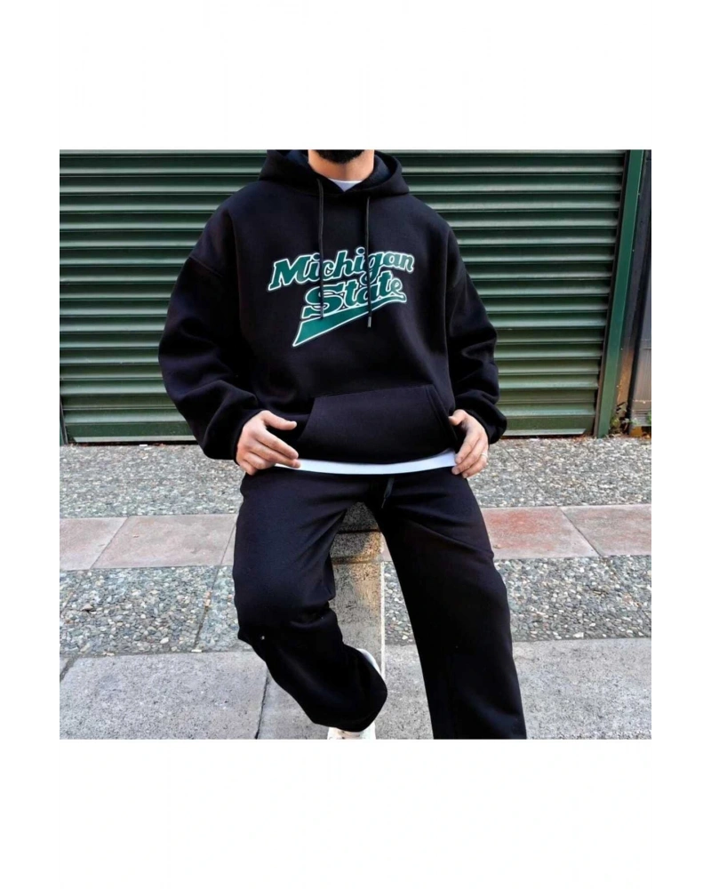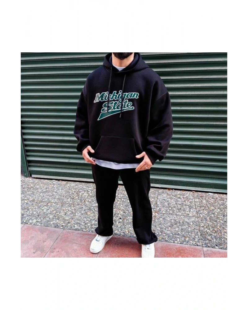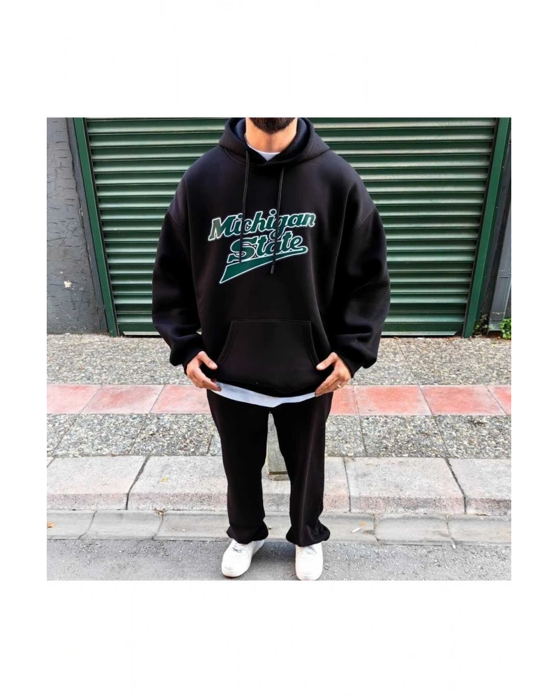 Unisex Erkek/Kadın MİCHİGAN Renkli Özel Baskılı Oversize Kapüşonlu Sweatshirt Siyah