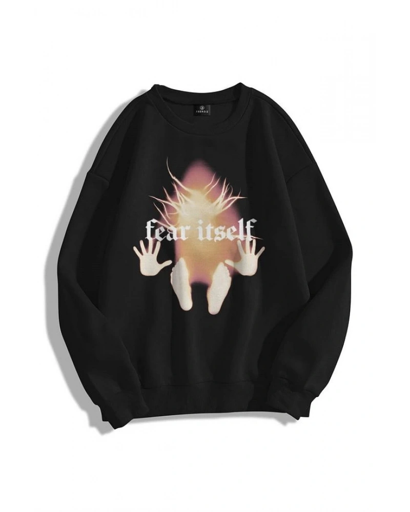 Unisex Fear Itself Bisiklet Yaka Sweatshirt Siyah