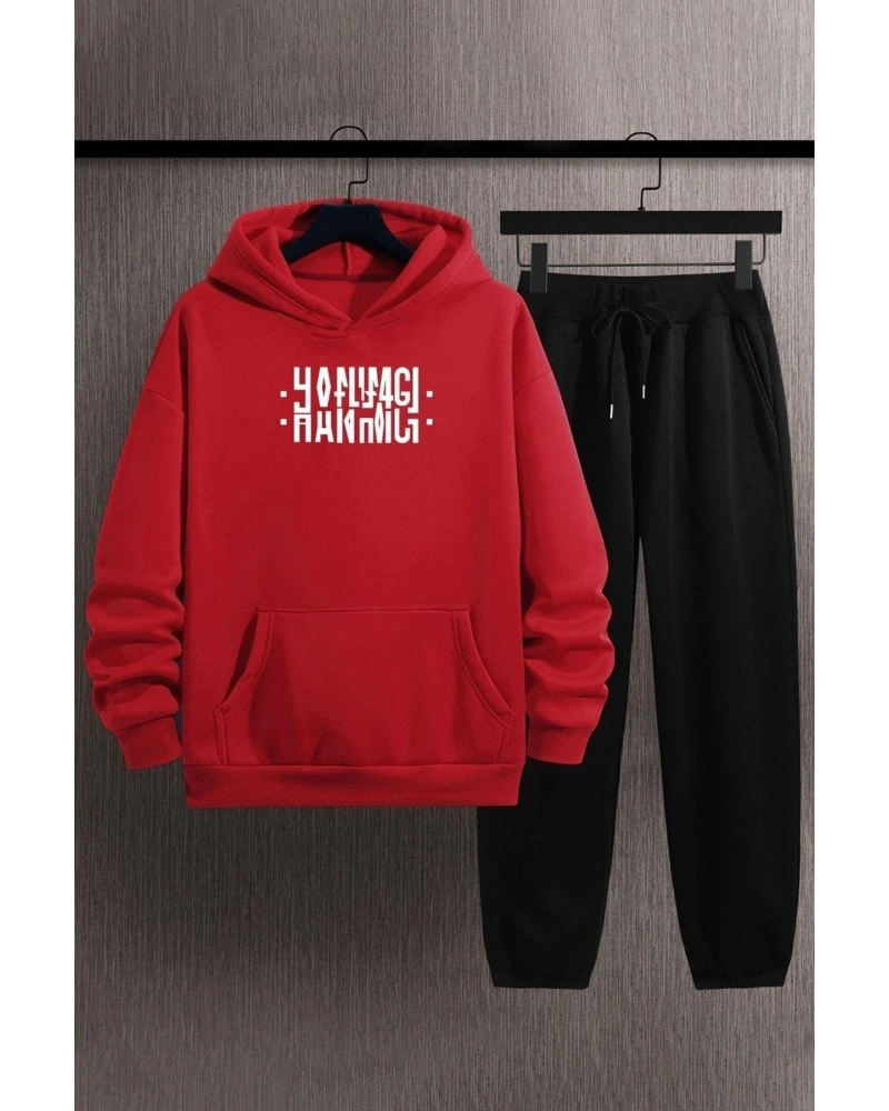 E harfli 2 li Kapşonlu Eşofman Takımı