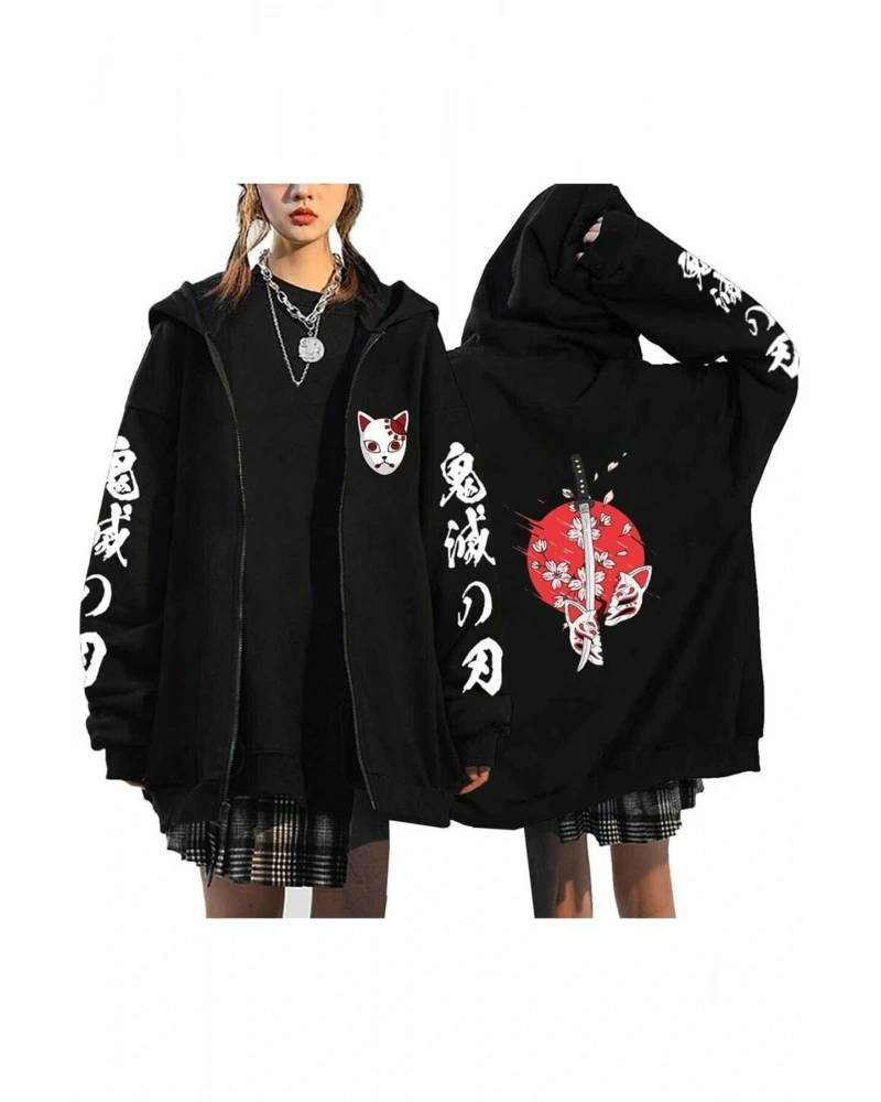 Unisex Hoodie Fermuarlı Anime Demon Cleaver Slayer