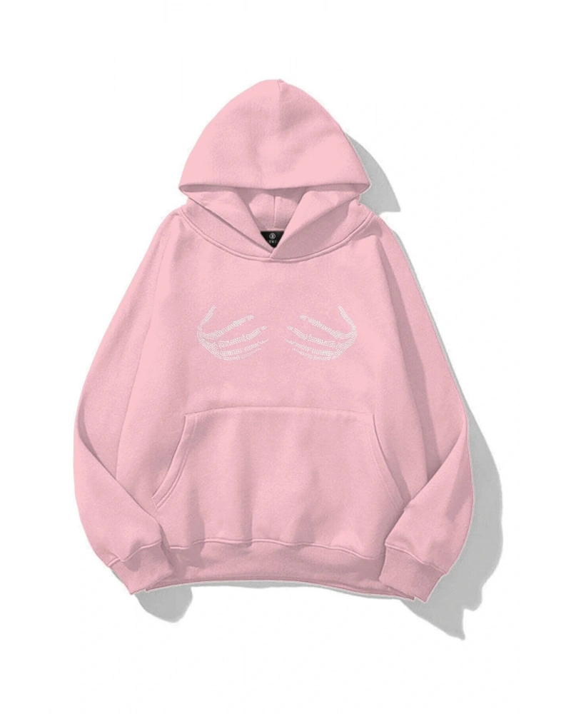 Unisex İskelet Taş Baskılı Sweatshirt Pembe