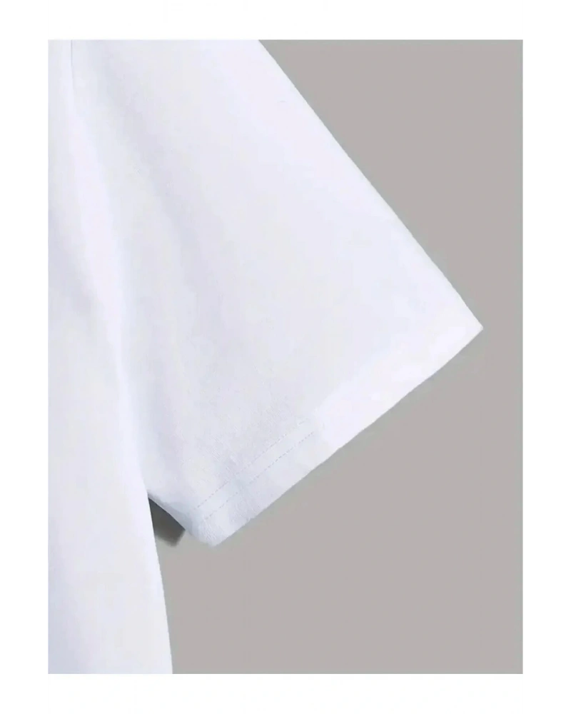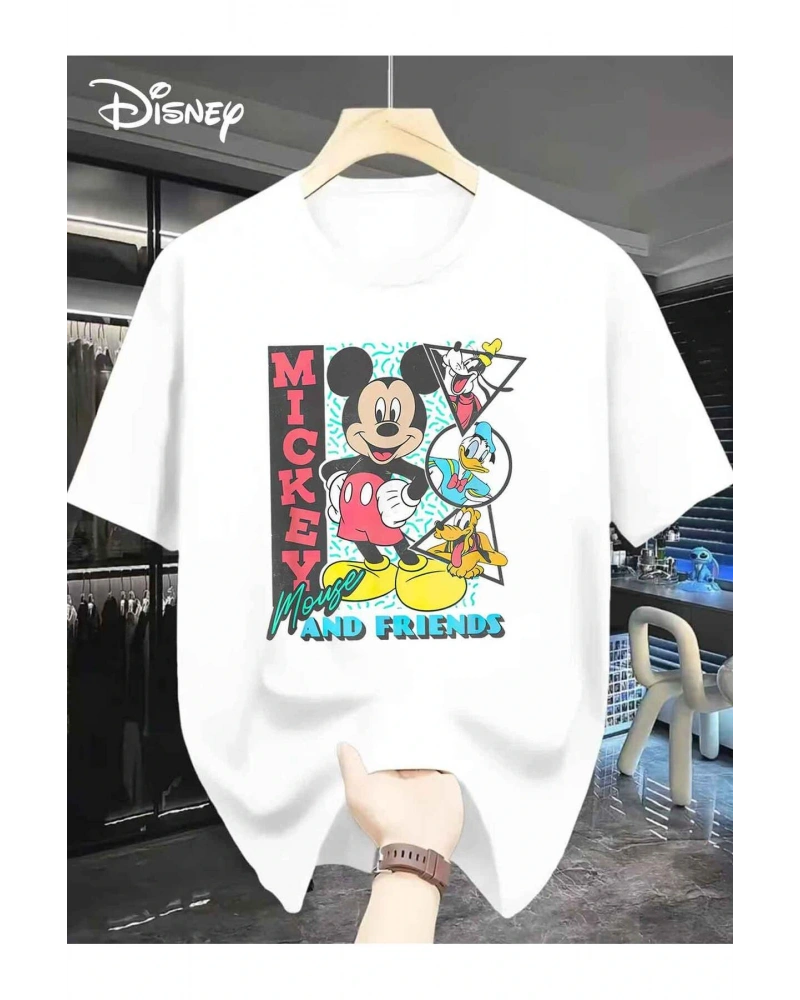 Unisex Kadın Erkek Mickey Mous Özel Baskılı Oversize Pamuk Penye T-shirt Beyaz
