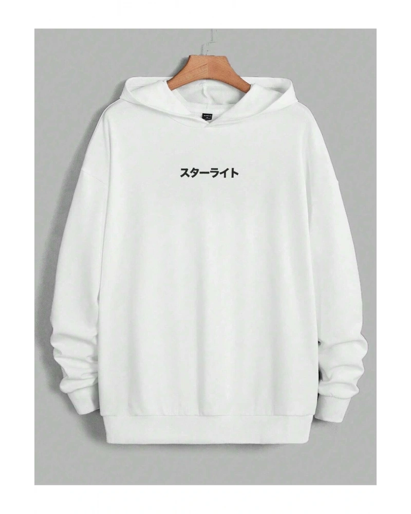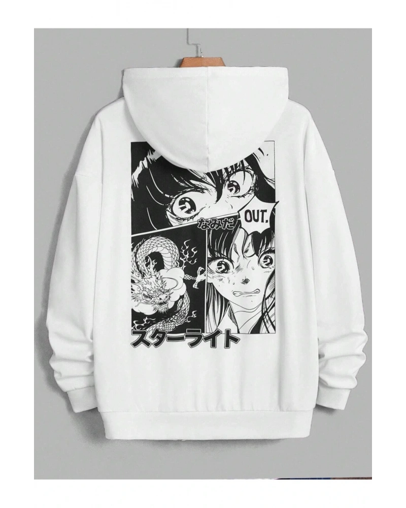 Unisex Kadın/Erkek Beyaz Anime Out Baskılı Oversize Kapüşonlu Sweatshirt