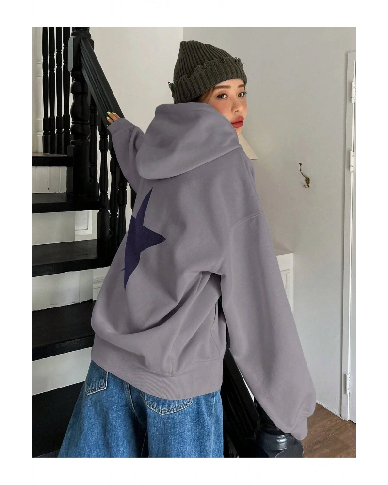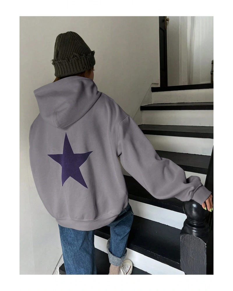 Unisex Kadın/Erkek DAZY Yıldız Desenli Düşük Omuzlu Kapüşonlu Üst