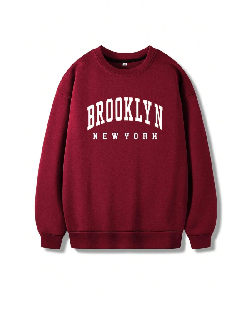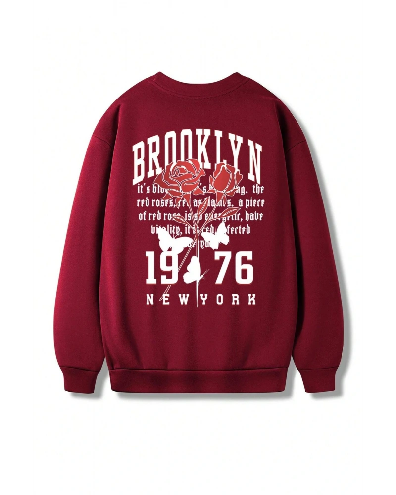 Siyah Yakasız Tüy Baskılı Unisex Sweatshirt