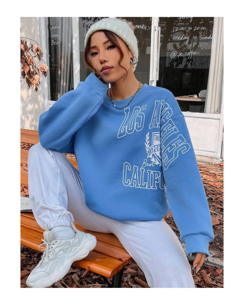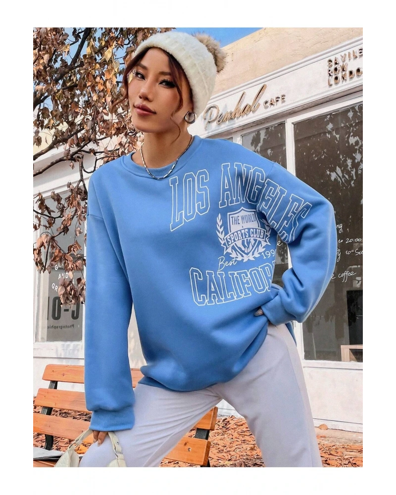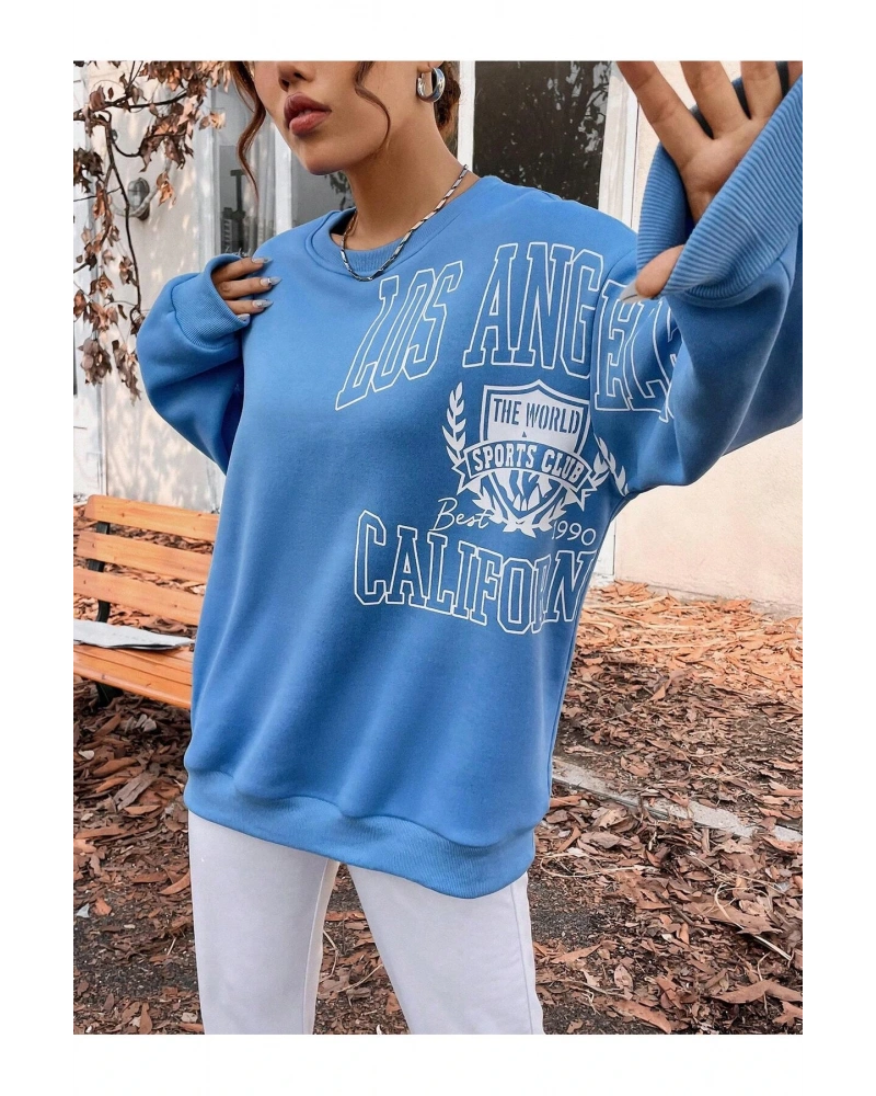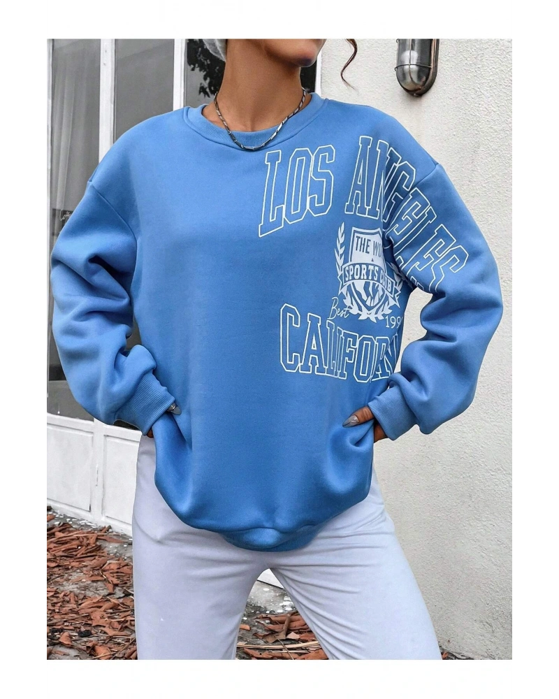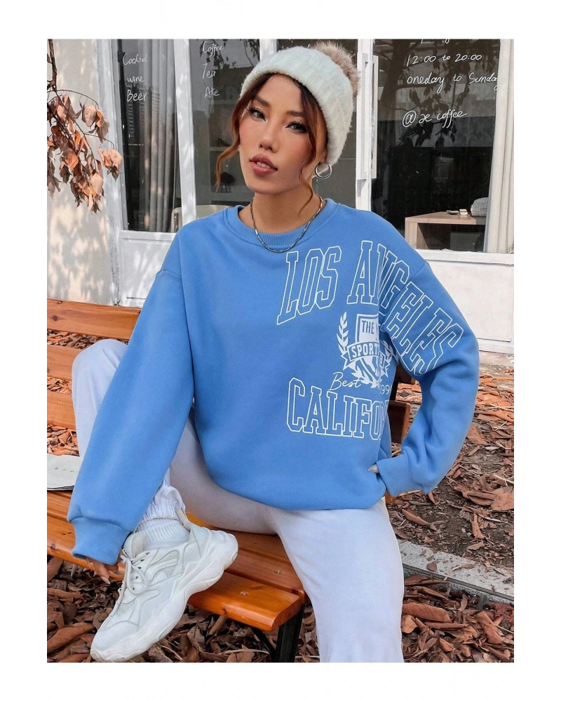 Los Angeles baskılı Üç İplik ünisex oversize Sweatshirt Füme