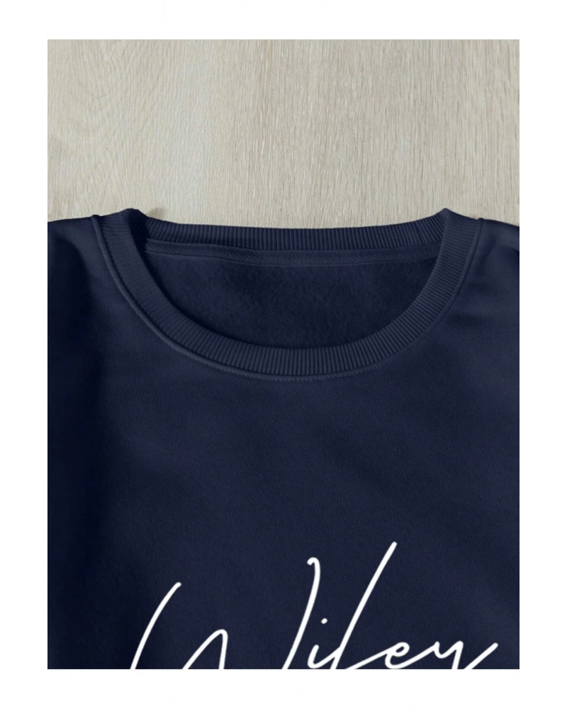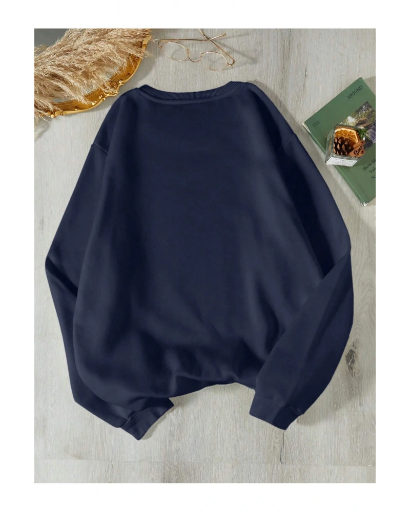 Karikatür & Harf Grafik Düşük Omuz Oversize Sweat Lacivert