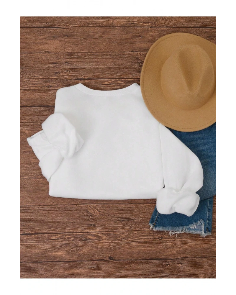 Siyah Yakasız Tüy Baskılı Unisex Sweatshirt