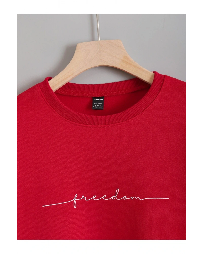 Unisex Kadın/Erkek Yazılı Baskılı Damla Omuz Sweat