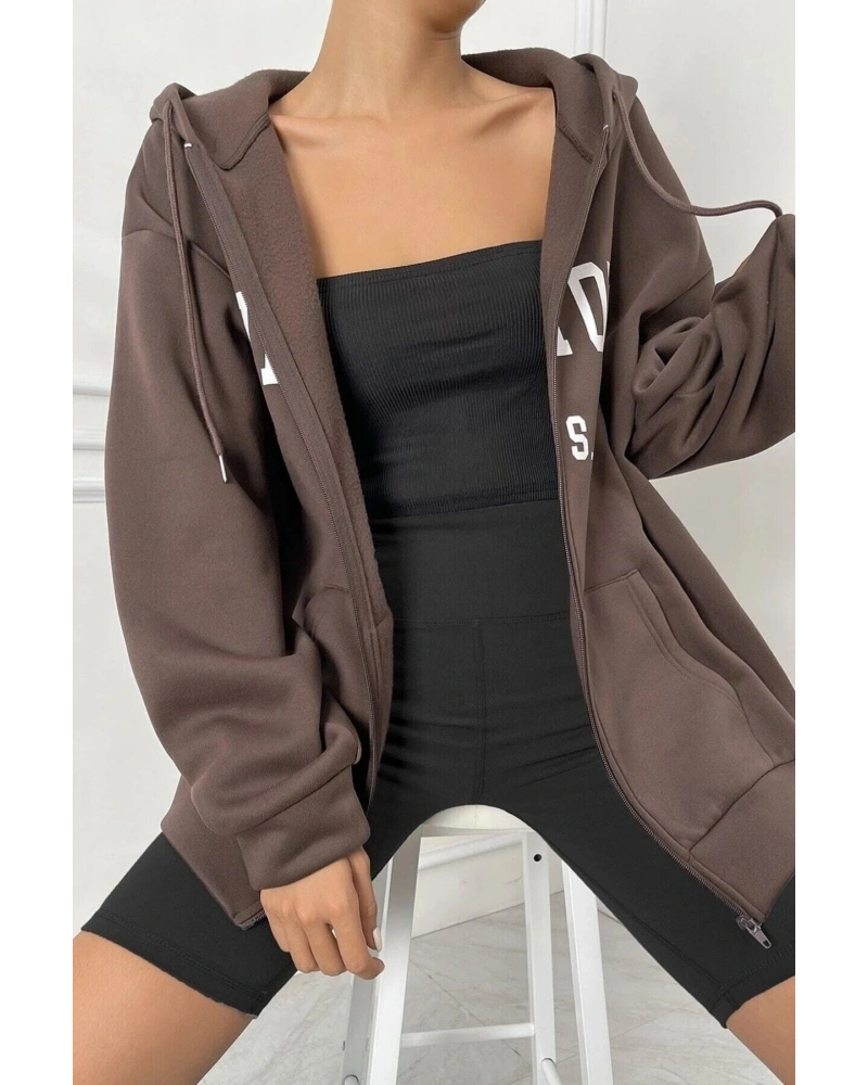 Kadın Kahverengi Düz Fermuarlı Kapüşonlu Ceket benisengiydirdüzceket Kahverengi