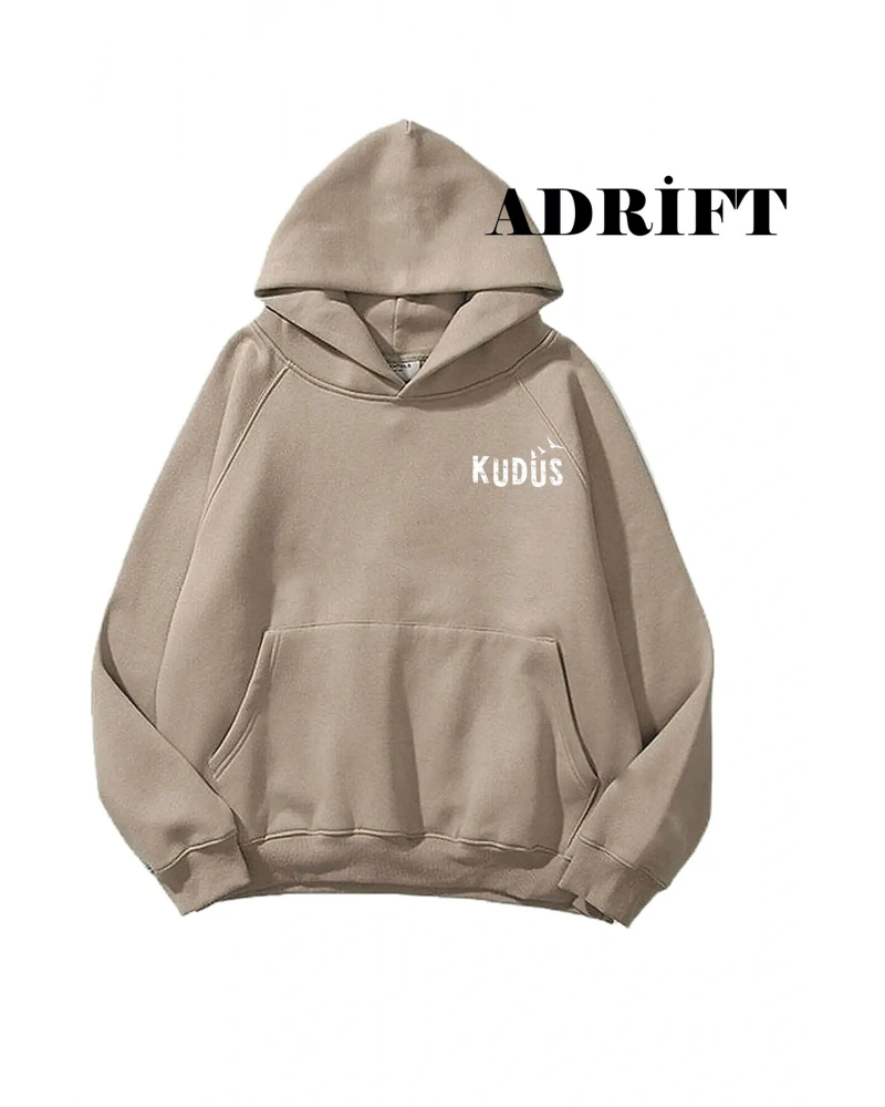 Unisex KudüsSweatshirt Hoodie Kapşonlu Bej