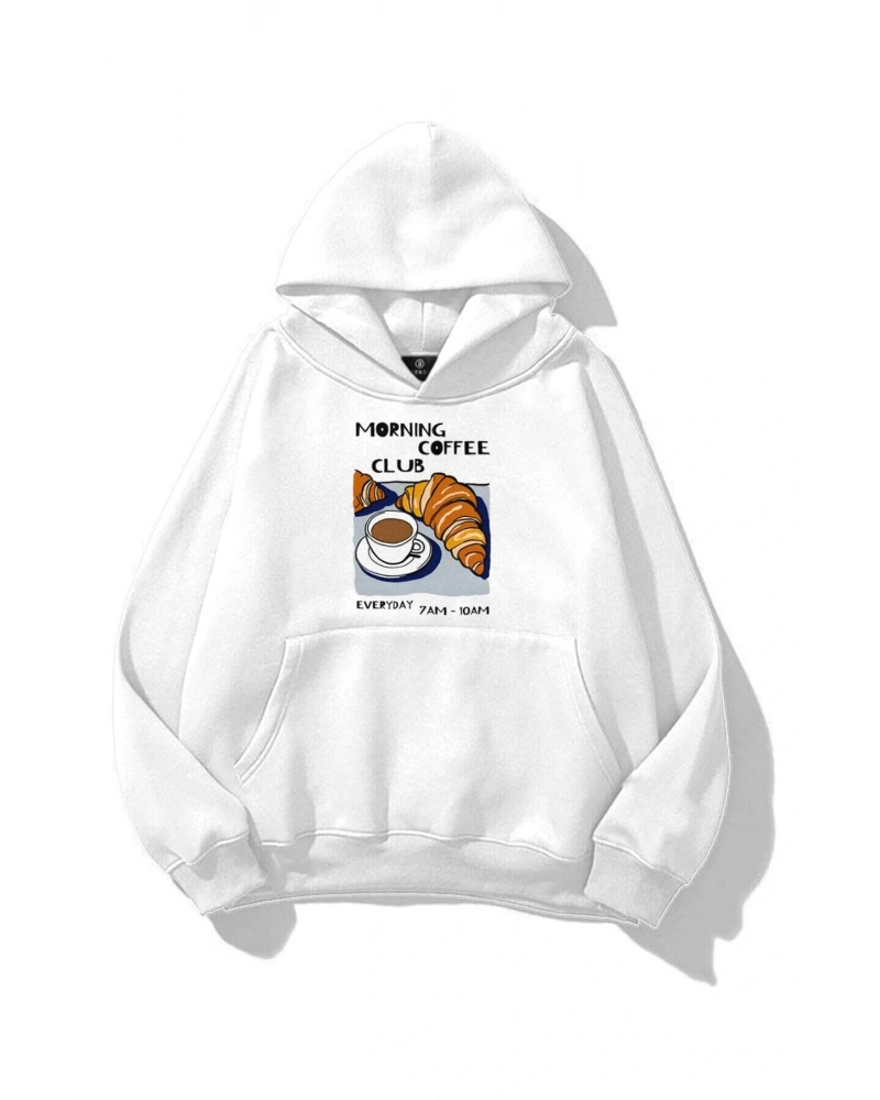 Unisex Morning Coffee Club Sweatshirt Beyaz