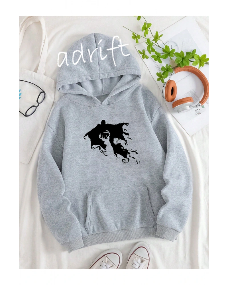 Unisex Oversize Kapüşonlu Kanguru Cepli Harry Potter Baskılı Gri