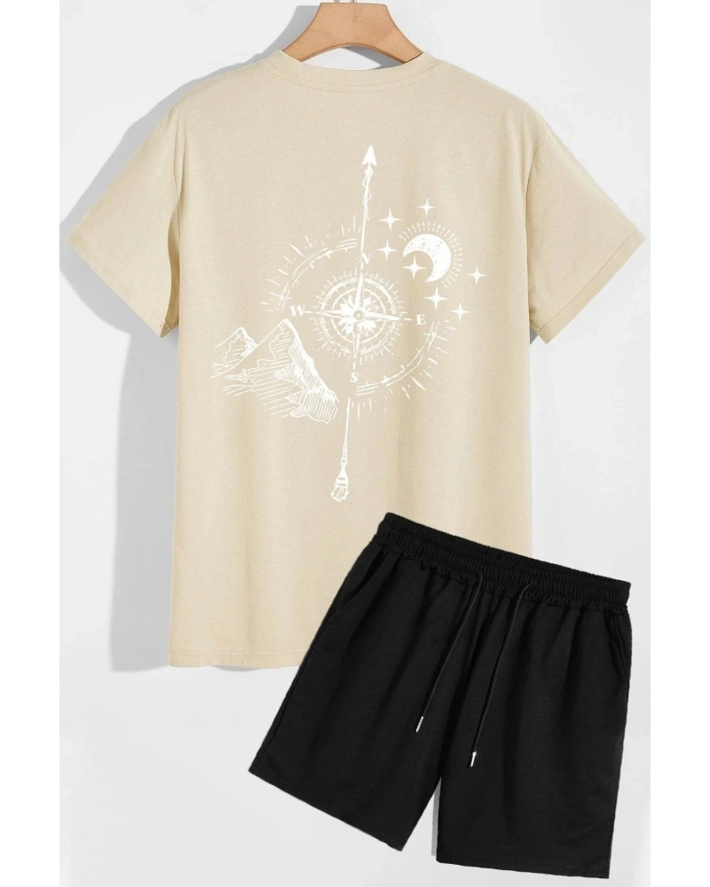 Unisex Pusula Şort T-shirt Eşofman Takımı TSH-PUSULA-SHRT-DÜZ