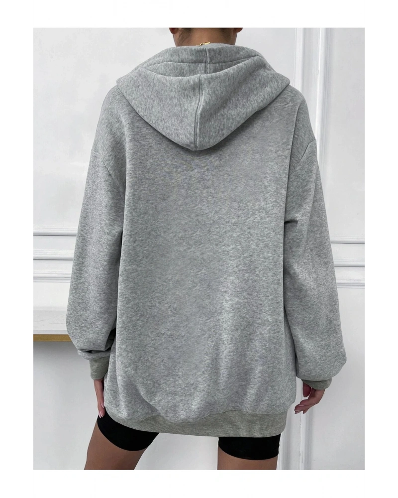 Büyük Beden Örümcek Ağı Silver Baskılı Kapüşonlu Fermuarlı Oversize Kadın Ceket-swe Siyah